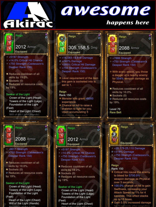 [Primal Ancient] [Quad DPS] Diablo 3 Immortal v5 Crusader Light gRift 150 (Magic Find, High CDR, RR) Deranged