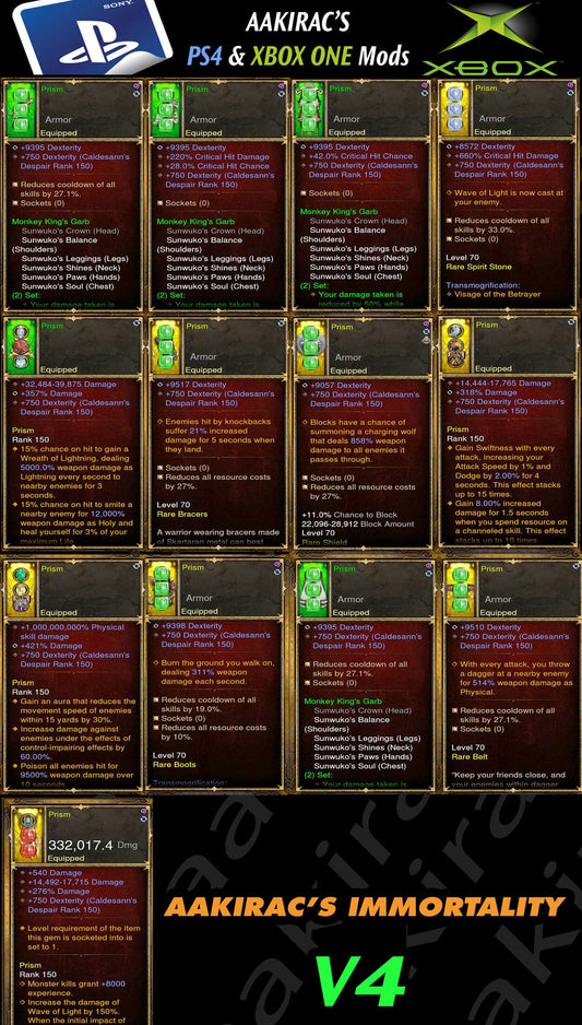 [CREATED 6/17/16] Diablo 3 Immortal v4 Classic Sunwuko Monk Modded Set for Rift 150 Prism