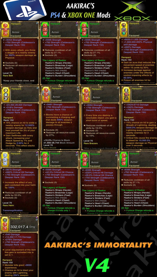 Diablo 3 Immortal v4 Classic Diablo 3 Immortal Kings Barbarian Modded Set for Rift 150 Sacred