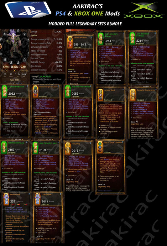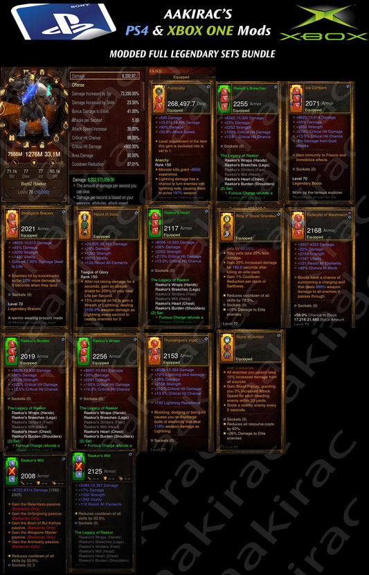 Bundled Deal #2: 4x MODDED Classes / Sets 56x Items Total - Wizard, Barbarian, Crusader x2