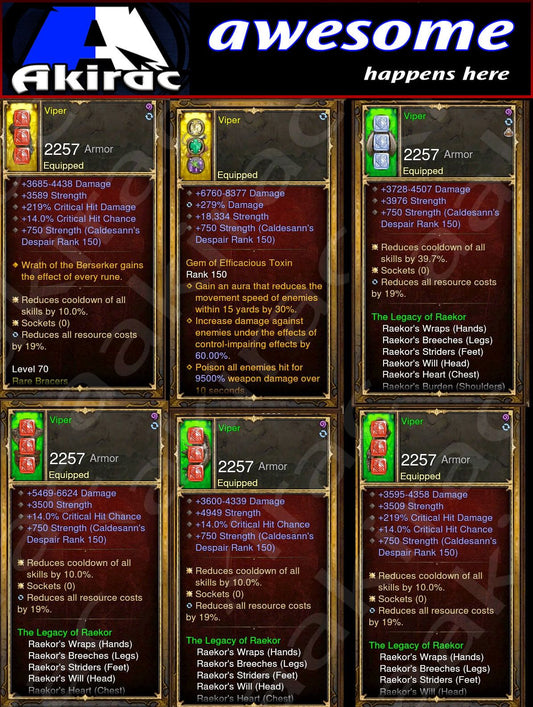 Diablo 3 Immortal v1 Raekor Barbarian Modded Set for Rift 150 Viper