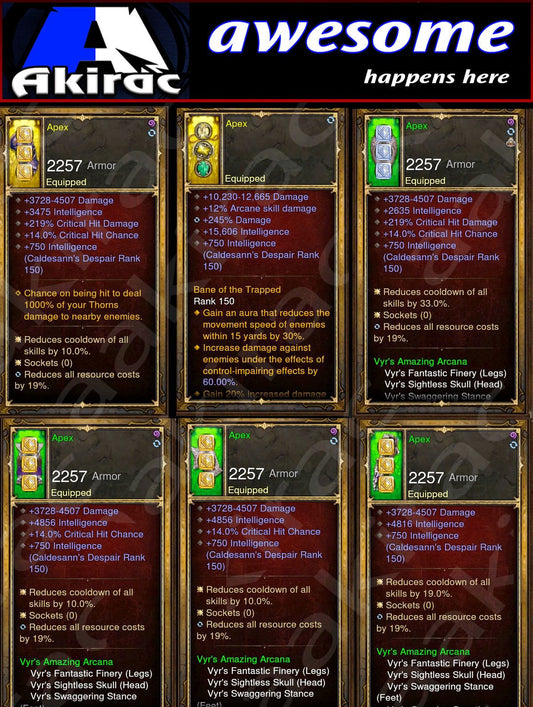 Diablo 3 Immortal v1 Vyrs Wizard Set for Rift 80-130 Apex